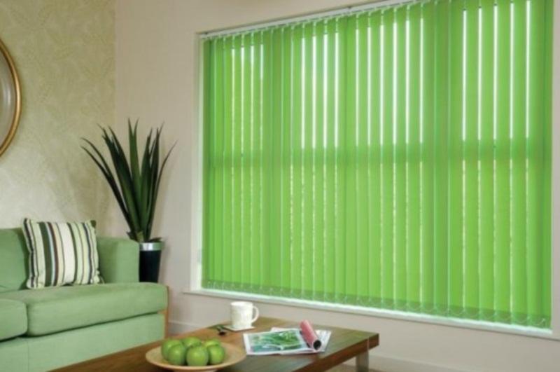 Вертикальные жалюзи состоят из полос ткани, закреплённых на карнизе. Особенности механизма позволяют поворачивать жалюзи, регулируя поток света, а также собрать их открыв окно полностью. Жалюзи собираются как в одну сторону, так и по принципу гардин в обе стороны или даже в центр окна. Жалюзи можно крепить как на стену, так и на потолок.